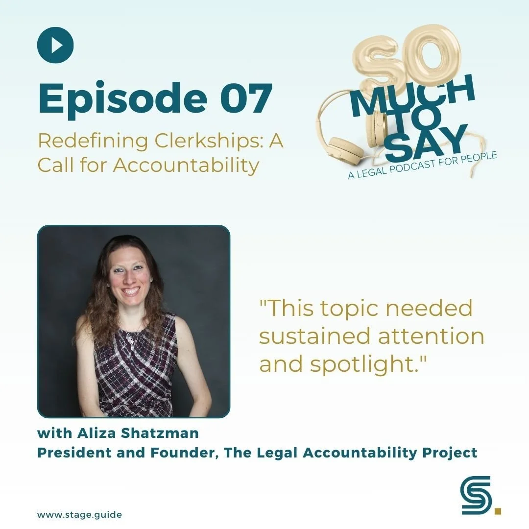 On this episode of So Much To Say, Megan & Jen are joined by Aliza Shatzman, who talks about the long-standing issues clerks have faced and how The Legal Accountability Project is working to solve these problems.